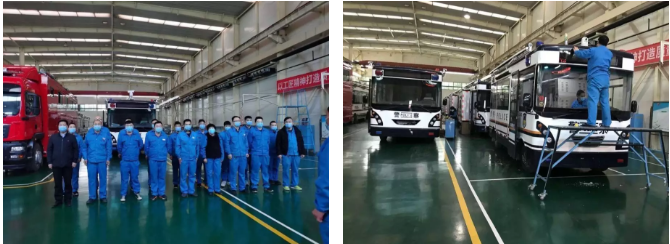 鸿马和汽车的生产一线工人为了第一时间将应急防疫车辆发出,实行24小时轮班制,于正月初二当日下午就发出管控卡点车辆;销售人员实行线上办公,积极联系各地疾控中心、卫健委、公安、医院等相关部门,提供防疫管控卡点车辆。从初二到初五,公司累计订单30余台,发出车辆17台。销售、生产、物资等部门全部进入应急工作状态,驰援防控第一线。人怀揣大爱,争分夺秒奋战在工作岗位上,坚决打赢疫情防控阻击战。
