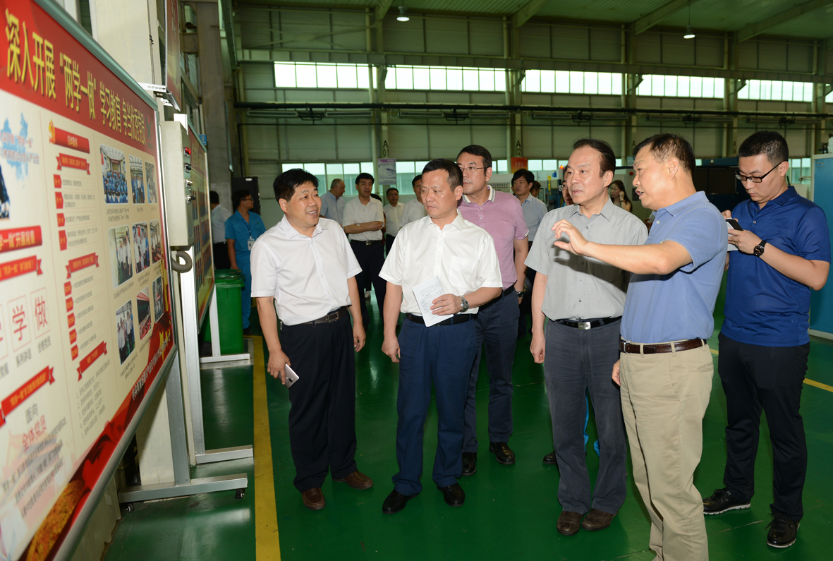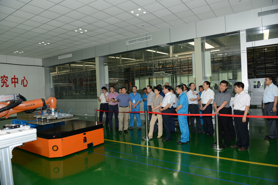 在电气,何平一行深入车间调研了公司智能化的装备和生产情况。在公司通过集成创新打造的钣金柔性智造系统和折弯机器人工作站旁,何平驻足细看;在变压器制造基地和智能断路器生产线旁,何平认真观摩;在机器人工程研究中心,何平走下观光车仔细观看,并详细询问了其研发生产情况。得知公司的机器人核心技术全部来自于自主研发,何平给予高度评价。