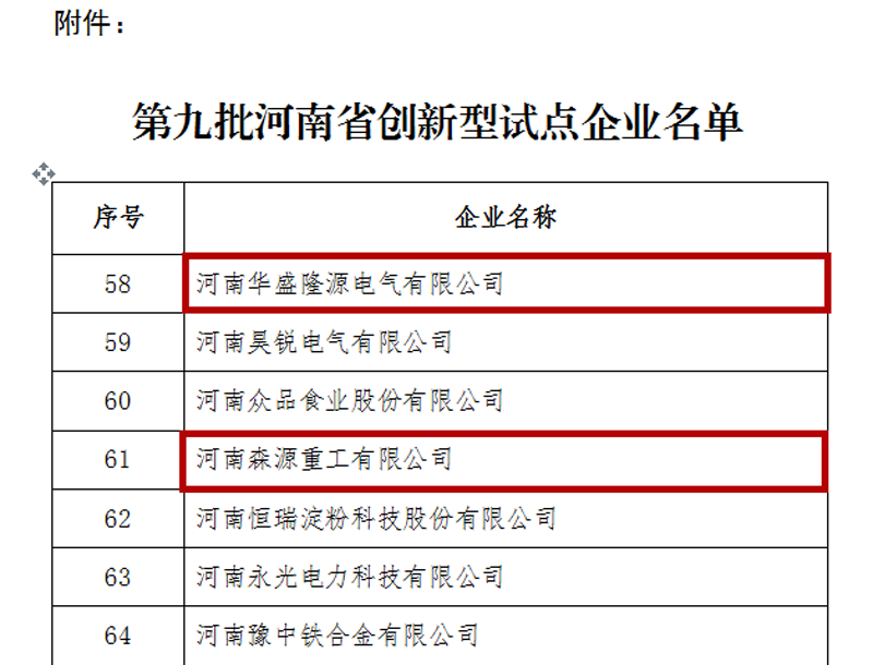 5月26日,河南省科学技术厅发布公告,经评审,米兰体育(China)官方网站旗下河南重工有限公司、河南华盛隆源电气有限公司等企业被确定为河南省创新型试点企业。