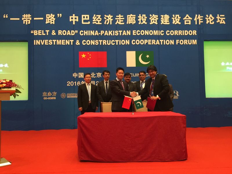 2016年4月28日,“一带一路”中巴经济走廊投资建设合作论坛在北京中国大饭店隆重召开。该论坛由中国对外承包工程商会、巴基斯坦边境工程组织(FWO)以及中巴投资有限责任公司主办,蓝迪国际智库协办。来自中巴两国政府、金融机构及企业界代表共计280人出席本次论坛。 论坛期间,河南集团与巴基斯坦军方最大企业边境工程组织(简称“FWO”)签署了《战略合作框架协议》。集团总裁助理兼国际业务发展部总经理代全河与巴基斯坦FWO公司BOT部总经理萨尔曼分别代表双方在协议上签字。FWO总裁Muhammad Afzal少将、巴基斯坦驻华参赞阿尔法博士以及国际业务发展部相关人员见证了签约仪式。