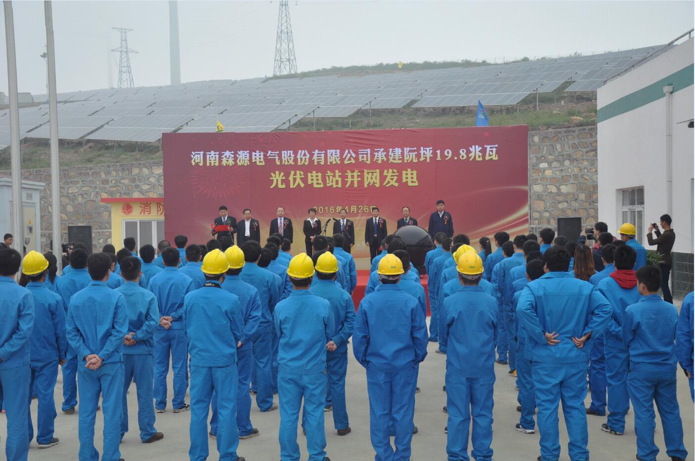 4月26日,由集团旗下电气股份有限公司承建的三门峡阮坪19.8兆瓦地面光伏电站经过最后的检测验收,顺利并网输电。集团领导杨合岭及光伏项目各部主要负责人出席仪式,与十余家媒体共同见证了这一激动人心的时刻。