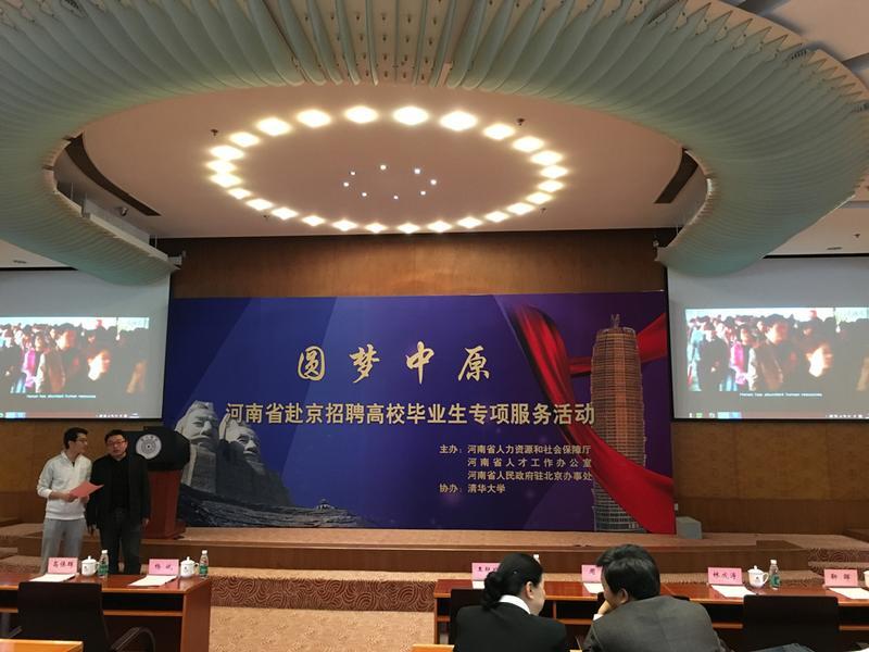 4月17日下午,“圆梦中原——河南省赴京招聘高校毕业生专项服务活动”在清华大学举行,集团应邀参加本次招聘活动。参加本次招聘活动不仅有河南省省委组织部、省公安厅等政府机关,郑州大学、河南大学等著名高校;还有中国石油化工、中国一拖集团等大型国企,米兰体育(China)官方网站作为省大型民企参与此次招聘,成为本次招聘活动的一大亮点。